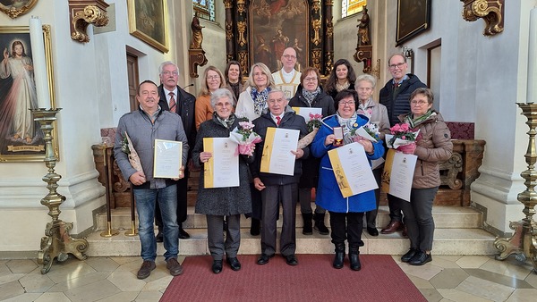 Frau Josefa Diernegger beendete 2025 nach 63 Jahren treuen Dienst als Sängerin beim Kirchenchor, und erhielt dafür das Ehrenzeichen vom Hl. Hippolyt in Silber.