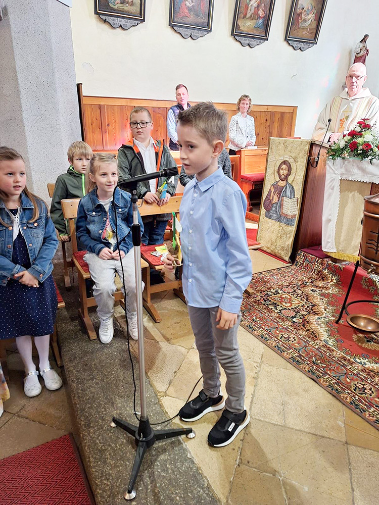 Es werden 14 Kinder ihre erste Heilige Kommunion empfangen, 12 Kinder aus der Pfarre Artstetten und 2 aus der Pfarre Pöbring.